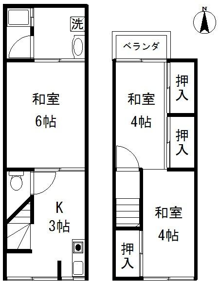 - 間取り:3K(K3帖、和室6帖、和室4帖、和室4帖)