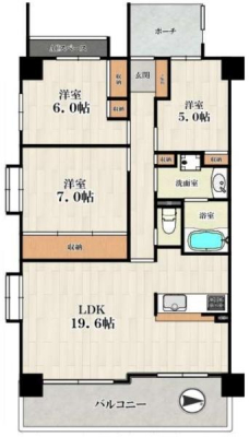 専有面積 | 81.14m2 | 間取り | 3LDK (LDK14.8/洋室12/洋室6.1/洋室4.5) | ||