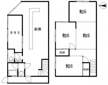| 築年月 | 1965年11月築 | 間取り | 3K (K3.5/和室4.5/和室6/和室4.5) | ||
