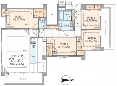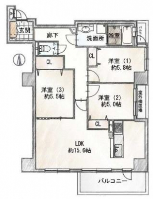 専有面積 | 74.78m2 | 間取り | 3LDK (LDK15.7/洋室6.5/洋室5.5/洋室4.5) | ||