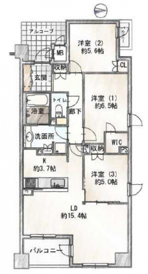 専有面積 | 65.19m2 | 間取り | 3LDK (LDK13.2/洋室6.2/和室6.1/洋室6) | ||