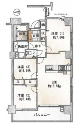 専有面積 | 74.78m2 | 間取り | 3LDK (LDK15.7/洋室6.5/洋室5.5/洋室4.5) | ||